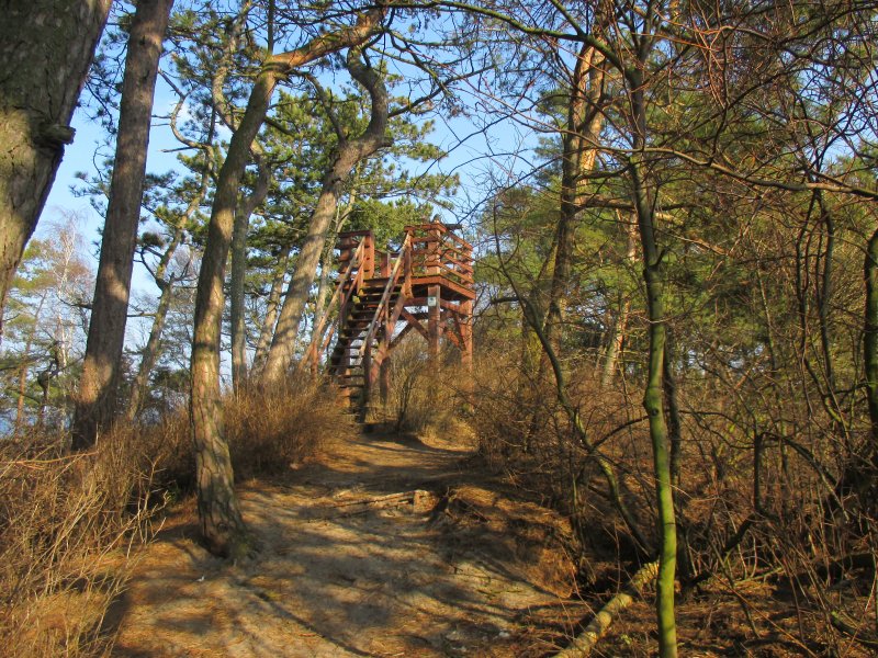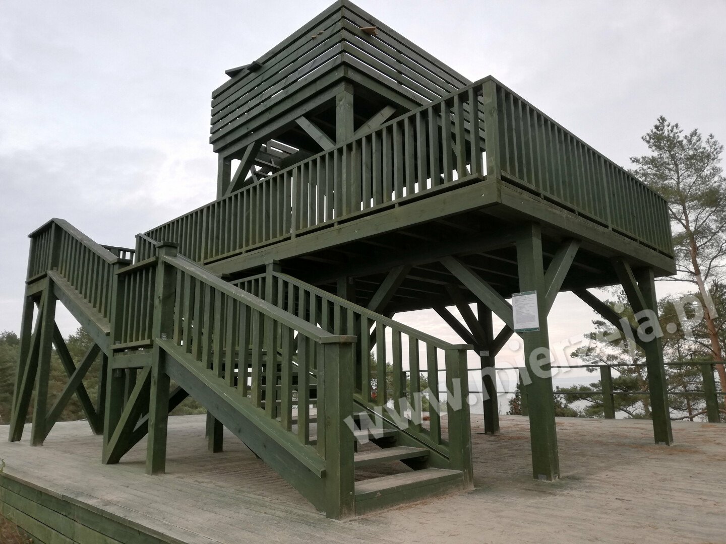 Na szczycie znajduje się drewniana wieża widokowa, z której rozciąga się panorama na Morze Bałtyckie, Zalew Wiślany oraz wzgórza Wysoczyzny Elbląskiej. Wieża została wybudowana w 2017 roku i ma około 7 metrów wysokości. Jest to popularne miejsce wśród miłośników przyrody i obserwatorów ptaków, zwłaszcza podczas sezonów migracyjnych .