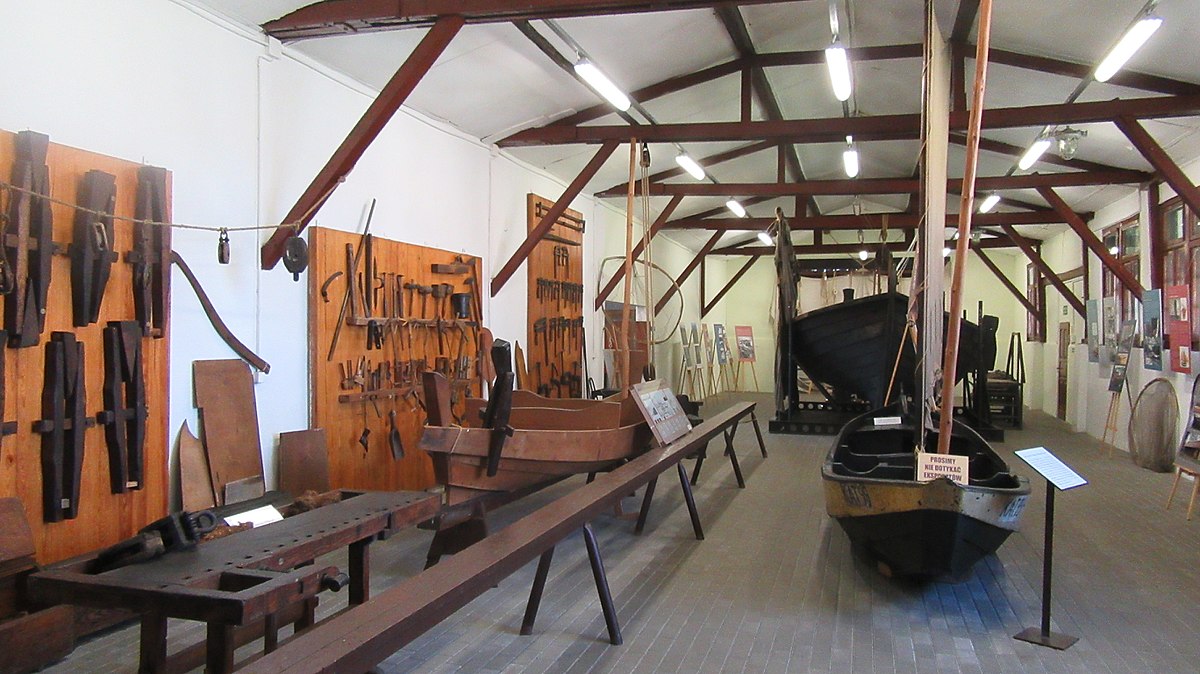 Muzeum pokazuje i opisuje historię szkutnictwa oraz rybołówstwa nad Zalewem Wiślanym.Jednym z najciekawszych eksponatów muzeum jest oryginalny warsztat szkutniczy rodziny Schmidtów z miejscowości Łaszka k. Sztutowa oraz łódź o napędzie żaglowym wykorzystywana do połowów ryb jeszcze w latach 60. ubiegłego wieku. Muzeum prezentuje również tradycyjne łodzie rybackie z okolic Zalewu oraz unikatowy ślizg lodowy Ludowy 8 – zwany od nazwiska konstruktora Weilandem.